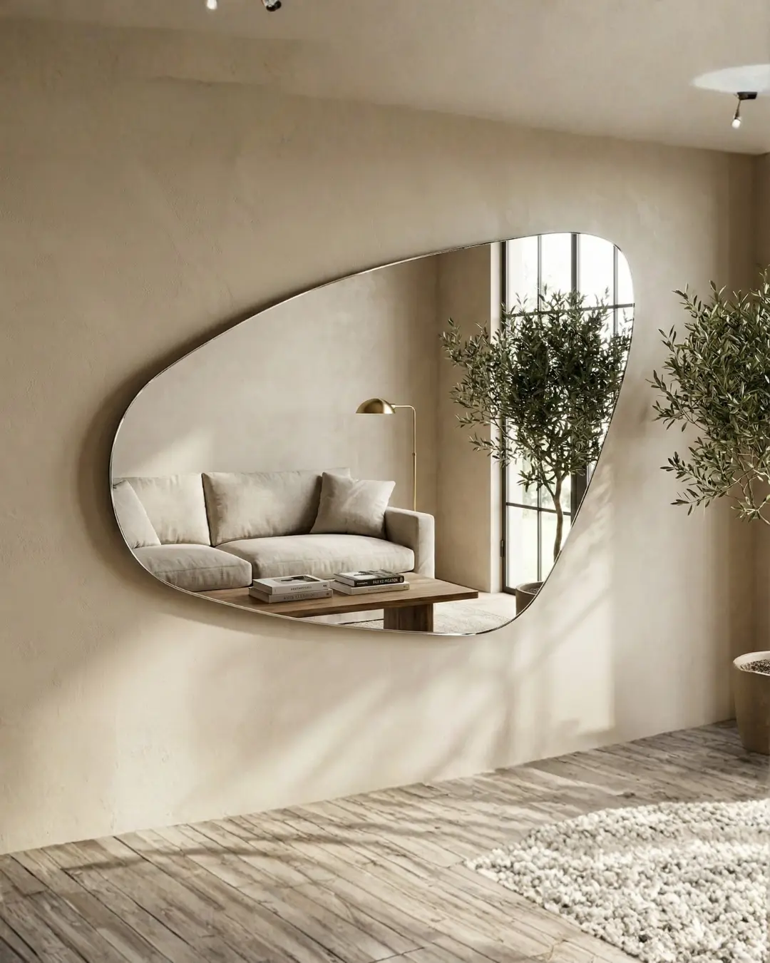 Diseño Único y Orgánico: Nuestra forma asimétrica exclusiva, sin marcos convencionales y con bordes suaves y fluidos, rompe con la monotonía de las líneas rectas. Es la pieza central perfecta para aquellos que buscan un diseño contemporáneo con alma natural.
