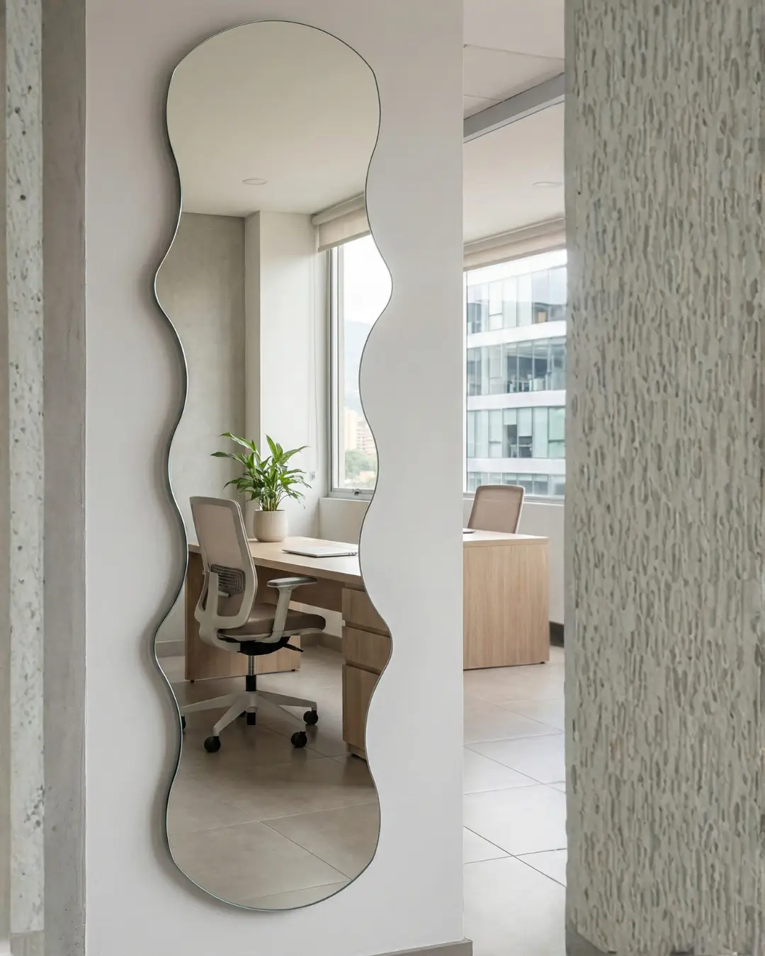 Transforma tu rutina diaria con el Espejo BELGICA, una pieza de diseño vibrante y orgánico que destaca por sus bordes ondulados. Este espejo de cuerpo entero sin marco aporta una sensación de fluidez y modernidad instantánea a cualquier habitación. Ideal para vestidores o salones que buscan un toque artístico y sofisticado sin perder la funcionalidad. Elegancia en movimiento para tu hogar.